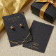 Auriculares con una tarjeta de presentación en negro y elegante, acentuada por líneas geométricas de oro, que le confieren un estilo boutique moderno. El diseño minimalista deja espacio para la marca mientras que los marcadores de agujeros impresos facilitan el posicionamiento; el uso de ventanas de tiendas, ferias de artesanía, empaques o planos en medios sociales. Los colores, las fuentes y el texto son totalmente editables, y el color dorado y los marcadores se imprimen para un acabado coherente y asequible. Considere la posibilidad de imprimir consejos o un identificador web en la parte posterior para reforzar el reconocimiento de marca y alentar la repetición de ventas.