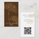 La tarjeta de visualización moderna de la pendiente incluye ilustracion dorado de hojas de gingko sobre fondo marrón oscuro con texto contemporáneo blanco en la parte delantera, y texto gris con código QR personalizable para tu sitio web o medios sociales en la parte posterior.