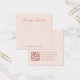 Una simple tarjeta de visualización de pendiente rosa: sólo texto rosa (más oscuro) sobre fondo rosa rubor. El nombre está escrito en una elegante caligrafía bajo ella, los lugares de arenque indicados por dos círculos muy pequeños. El sitio web escrito cierra la frontera inferior. Hay más información en la parte de atrás, en la parte inferior. También tiene código QR en la parte posterior, a la izquierda de la información.