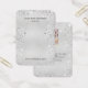Una tarjeta de presentación para tu auricular o joyería hecha a mano. Un clásico fondo metálico de imitación de plata, texto negro.Decorado con polvo falso purpurina. Personalice y agregue su nombre e información de contacto en la parte delantera.