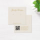 Una simple tarjeta de visualización de marfil y oro: sólo texto dorado sobre fondo de marfil. El nombre está escrito en una elegante caligrafía bajo ella, los lugares de arenque indicados por dos círculos muy pequeños. El sitio web escrito cierra la frontera inferior. Hay más información en la parte de atrás, en la parte inferior. También tiene código QR en la parte posterior, a la izquierda de la información.