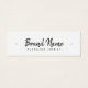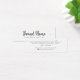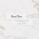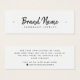 Tarjeta mini de visualización de producto en color blanco o personalizado con iconos de medios sociales y su nombre de marca en un elegante tipo de letra de caligrafía. Se pueden ajustar las guías de asignación agregando y eliminando espacios en el campo de plantilla y moviendo todo el elemento en la herramienta de diseño. Diseño elegante, moderno y minimalista
