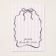 Una bonita y original tarjeta de presentación, con un fondo de pinstripe rosa y blanco de estilo parisino, un guión de doodle manuscrito y un marco de cinta de estilo coqueta.
