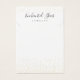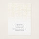 Dé a su negocio de joyas un aspecto único y profesional con esta tarjeta de visualización de collar con fondo de punto de confeti de Relieve metalizado falso dorado. El nombre de un tipo de letra manuscrito añade una apariencia de firma moderna. (Nota: El aspecto dorado del confetti se consigue con una imagen impresa y no es tinta metálica ni Relieve metalizado.)
