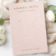 Elegante tarjeta de visualización de pendientes con campos de plantilla para la información de su negocio en un fondo de lino rosa rubor IMPRESO
