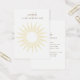 Una tarjeta de visualización de zócalo de color dorado con círculo abstracto y líneas radiantes, para un estilo moderno y audaz. Se colocan pequeños círculos como guías para la colocación de joyas. No hay agujeros en la tarjeta.Puede borrar las guías de círculo pequeñas. Los cortes se simulan en las obras de arte. Las ilustraciones se imprimirán como se muestra y no contendrán agujeros precortados ni resbalones.
