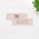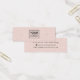 Tarjeta de visualización de producto mini con plantilla de logotipo de personalizado central e iconos de medios sociales en un fondo de lino IMAGEN rosa. Se pueden ajustar las guías de asignación agregando y eliminando espacios en el campo de plantilla y moviendo todo el elemento en la herramienta de diseño.