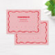 Tarjeta de visualización de rebote con forma de acequia roja sobre fondo rosa. Los agujeros de plantilla se pueden ajustar o eliminar, así como toda la información de su empresa. Añade tu medio social o sitio web al final.
