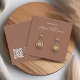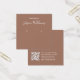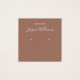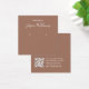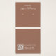 Una tarjeta minimalista para la visualización de los audífonos de color marrón: sólo texto blanco sobre fondo marrón (una moderna sombra marrón), con dos círculos muy pequeños que indican los arenques. El nombre está escrito en un guión elegante. Tiene un código QR en la parte posterior, en la parte inferior, a la izquierda de la información.