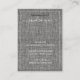 Hermoso artista de joyería artística que lleva tarjeta de exhibición. Con una tipografía contemporánea de moda elegante sobre un patrón de textura de tela de tela de tela de tela gris, negro y blanco. Haga clic en 'Personalize' para encontrar la plantilla lista para ser personalizada con su nombre de negocio único, y la información de contacto, y el texto de su elección en el lado frontal y posterior de la tarjeta. Este particular bonito y diseño único fue hecho para los que gustan de los sofisticados diseños ornamentales clásicos.