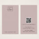 Tarjeta de visualización de producto de anclaje vertical de color rosa claro o personalizado con logotipo personalizado y código QR. Elegante diseño minimalista.