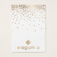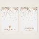 Esta tarjeta de brillo contiene portaobjetos de espacio de plantilla en los que puede agregar su propio logotipo o gráfico al frente y los detalles de contacto al reverso. El logo de la muestra aparece en oro, pero este diseño también sería agradable para un color diferente. Sobre el fondo blanco editable, he colocado un gráfico atrevido que representa un confetti de imitación de oro que parece caer desde arriba.