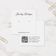 Una tarjeta de visualización minimalista, negra y blanca: sólo texto negro sobre fondo blanco, con los lugares de errado indicados por dos círculos muy pequeños. El nombre está escrito en una caligrafía elegante. Tiene un código QR en la parte posterior, en la parte inferior, a la izquierda de la información.