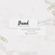 Mini tarjeta de visualización de producto en color blanco o personalizado con iconos en medios sociales. Se pueden ajustar las guías de asignación agregando y eliminando espacios en el campo de plantilla y moviendo todo el elemento en la herramienta de diseño. Diseño moderno y mínimo
