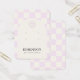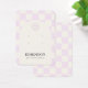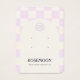 Tarjeta de visualización de canalización con un lindo patrón de cuadros de lila. Los agujeros de plantilla se pueden ajustar o eliminar, así como toda la información de su empresa. Añade tu medio social o sitio web al final.