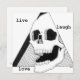 Entretenga a los cínicos y sátiros en su vida con esta tarjeta de felicitación con tema de calavera "Vive, ríe, ama". También podría exhibirla en broma como una impresión. Estamos conscientes de que no todos nuestros gustos o diseños cumplen con los criterios básicos/mainstream, y estamos emocionados de tener nuestro nicho en el entretenimiento de la población periférica. Mi esposo diseñó esta calavera utilizando bolígrafo y tinta y rellenó las sombras con acuarela. También utilizó sombreado cruzado intrincado para crear los elementos de sombreado. Yo agregué el texto como una broma y disfrutamos del resultado final.