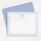 Una encantadora tarjeta de nodriza azul gingham para un niño bebé, con un delicado ilustracion de caballo y texto de personalizable. Perfecto para notas de agradecimiento, correspondencia personal o papelería infantil, este diseño atemporal combina un patrón clásico de comprobación azul con detalles elegantes. Un bello recuerdo y una manera cuidadosa de enviar mensajes cálidos a sus seres queridos.