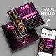 Este moderno folleto de Instagram es perfecto para promocionar las ofertas especiales de febrero de tu peluquería. El diseño incorpora un collage de impresionantes fotos capilares, un código QR para una reserva fácil y precios claros para cada servicio. El audaz esquema de color rosa y negro crea un impactante impacto visual, asegurando que sus promociones se destaquen. Es una forma sencilla de elevar la comercialización de su salón.