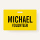 Tarjeta de voluntario amarillo con nombre personal