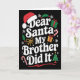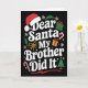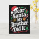 Tarjeta Dear Santa My Brother Did It Christmas Humor
