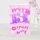 Décimotercero tarjeta de cumpleaños feliz. Color: Sobre todo rosas y púrpuras. Interior del saludo: El feliz cumpleaños, mayo este día sea siempre especial a recordar.