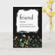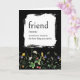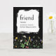 Definición negrita de diccionario blanco para un AMIGO en negro con un borde de flor silvestre para el cumpleaños de un amigo. Se puede cambiar el fondo.