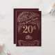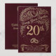 Celebre veinte años de devoción con esta exquisita tarjeta de aniversario de 20 años en color granate intenso y dorado. Con un rico fondo de color vino aterciopelado y florituras doradas intrincadas, este diseño captura la esencia de un hito de dos décadas. La parte frontal muestra un "20º" en negrita con el sentimiento "Que su amor crezca más fuerte con cada año que pase", lo que la convierte en la opción perfecta para un cónyuge o una pareja especial. Ya sea que lo llame el aniversario de China o simplemente una celebración de 20 años juntos, esta tarjeta ofrece una estética premium y artesanal que se destaca.