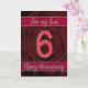 tarjeta del 6º aniversario con rosas y hojas