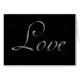 esto es un gran diseño romántico de la tarjeta de nota (notecard) con la palabra "amor" escrito en la escritura de plata en un fondo modelado negro. Su estilo clásico elegante intrépido lo hace perfecto para utilizar como boda o regar la invitación y apenas tan perfecto a utilizar como notecard ese alguien el justto especial dice te amo.