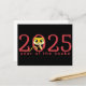2025 es el año de la serpiente. Celebre con este diseño que presenta "2025" y una serpiente de dibujos animados linda en el 0. En el reverso de la tarjeta postal hay una serpiente, una bolsa roja y monedas de oro.