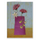 Centro de flores en florero púrpura. La tarjeta en blanco perfecta para las celebraciones, enhorabuena, aniversario, consigue bien, pensando en usted.