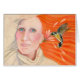 Cassandra hermoso, destacado consigue una visita de su colibrí preferido. Una tarjeta de nota llamativa para cualquier ocasión. Pintura en colores pastel original de Laura J. Holman ©2011.