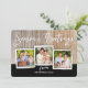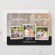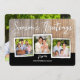 Un diseño rústico moderno de tipografía preciosa que lee los "saludos de la estación" y ofrece un collage enmarcado de tres fotos de su familia feliz fijada en un falso fondo de madera del grano en el frente. En la parte posterior, una foto del mismo tamaño es conveniente para enmarcar. Una tarjeta hermosa, contemporánea para cualquier saludo del día de fiesta.