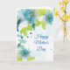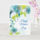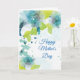 Imaginen esta fresca tarjeta de la madre impresa con acuarela floral que está siendo abierta por tu madre especial con este mensaje especial del día de la madre dentro, Hues of Blues & Greens en un crujiente fondo blanco. Saludo impreso dentro.