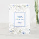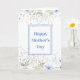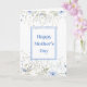Esta tarjeta del Día de la Madre se muestra en una hermosa impresión floral azul con este mensaje especial del Día de la Madre dentro. Se imprimió el saludo de fin mate en el interior. Imagen de stock