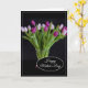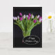 Esta tarjeta del Día de la Madre se muestra con una hermosa impresión de foto de tulipanes púrpura.