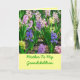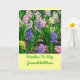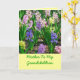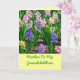Aquí hay una tarjeta del Día de la Madre de una madre a otra. De hecho, es de madre a hija adulta felicitarla por lo buena madre que es para sus nietos. Fotos en el frente de jacintos coloridos.
