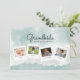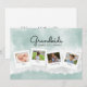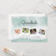 Desea a la abuela un feliz Día de la Madre con esta linda tarjeta de collage de fotos de acuarela. Personalízala con 4 fotos familiares y nombres para una tarjeta verdaderamente única. El reverso dice: Feliz Día de la Madre xoxo pero se puede cambiar a Feliz Día de los Abuelos o cualquier texto que desees.