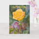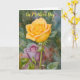 Mi obra de arte original aparece en esta tarjeta floral del Día de la Madre, que consiste en mi fotografía de una flor de rosa amarilla, procesada con un efecto de acuarela para darle una apariencia ilustrada y caprichosa. La parte frontal de la tarjeta dice "¡En el Día de la Madre!" y el interior de la tarjeta dice "Pensando en ti hoy con mucho amor y abrazos. ¡Feliz Día de la Madre!". Una tarjeta genial y sincera para cualquier mamá que ame las flores y la naturaleza.