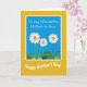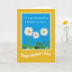 Tarjeta de saludo del Día de la Madre de moda para una suegra, con tres maricas blancas en un fondo azul cielo. Parte de la colección "Daisy Chain" de Posh & Painterly.