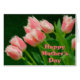Tulipanes rosados con las palabras Feliz Día de la Madre debajo de ellos. El interior está en blanco.