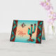 ¡Regale a su madre esta tarjeta del Día de la Madre del cactus y sol del suroeste "única en su tipo"! Cuenta con un gran cactus del suroeste y sol en un fondo de puesta del sol turquesa y naranja... rodeado por un borde turquesa, naranja y negro. Este es un diseño original del artista Kerry Miller.