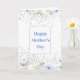 La tarjeta del día de la madre se muestra en una hermosa huella floral azul de flores silvestres. En blanco dentro. Imagen de stock