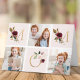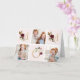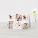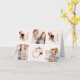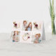 Tarjeta del Día de la Madre personalizada y impresa a medida con tus fotos y texto. Este diseño moderno y minimalista presenta una maquetación de varias fotos para 3 fotos y la palabra MOM en letras brillantes doradas decoradas con flores de borgoña y rosa. Agrega otra foto y tu saludo personalizado en el interior.