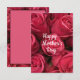Tarjeta del día de la madre floral rosa en un ramo de rosas rojas, "Feliz día de la madre" se muestra en primer plano.