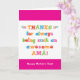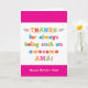 Llamas Amá a tu madre, no Mom. (Amá significa madre en español.) ¡Imagínate cuán emocionada estará Amá al recibir una tarjeta del Día de la Madre dirigida especialmente a ella! A tu amá también le encantará el divertido diseño basado en texto colorido de esta tarjeta que dice "¡Gracias por siempre ser una Amá increíble! ¡Feliz Día de la Madre!".