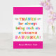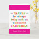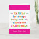 Llamas a tu abuela Babushka, no a la abuela. (Babushka significa abuela en ruso). ¡Imaginen lo emocionado que estará Babushka de recibir una tarjeta del Día de la Madre dirigida especialmente a ella! A tu babushka también le encantará el divertido y colorido diseño de esta tarjeta basado en texto que dice "¡Gracias por ser siempre una Babushka tan impresionante! ¡Feliz Día de la Madre!" ¡Haz personalizable esta carta! Haga clic en "Editar diseño", "Inferior/Derecha: Texto e imágenes", "Texto" y "Añadir texto" para escribir su propio personalizado, mensaje personalizado a Babushka dentro!