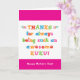Llamas a tu abuela Kuku, no a la abuela. (Kuku significa abuela en hawaiano). ¡Imaginen lo emocionado que estará Kuku de recibir una tarjeta del Día de la Madre dirigida especialmente a ella! A tu kuku también le encantará el divertido y colorido diseño de esta tarjeta basado en texto que dice "Gracias por ser siempre un Kuku tan impresionante! ¡Feliz Día de la Madre!" ¡Haz personalizable esta carta! Haga clic en "Editar diseño", "Inferior/Derecha: Texto e imágenes", "Texto" y "Añadir texto" para escribir su propio personalizado, mensaje personalizado a Kuku dentro!