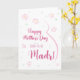 la tarjeta de la madre embarazada Madr. Esta tarjeta del Día de la Madre es perfecta para la esperada Madr en tu vida. (Madr significa madre en persa.) A la futura señora le encantará el lindo diseño floral de esta tarjeta con un minimalista dibujo de la barriga de una mujer embarazada y flores rosadas. Dice: "¡Feliz Día de la Madre a la próxima madrina! Esta tarjeta del Día de la Madre será un éxito con cualquier madre embarazada cuyo bebé la llamará Madr. ¡Haz personalizable esta carta! Haga clic en "Editar diseño", "Inferior/Derecha: Texto e imágenes", "Texto" y "Añadir texto" para escribir su propio personalizado, mensaje personalizado a Madr dentro!