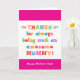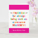 A mamá le encantará el divertido y colorido diseño basado en textos de esta tarjeta del Día de la Madre que dice "¡Gracias por ser siempre una mami tan impresionante! ¡Feliz Día de la Madre!" ¡Haz personalizable esta carta! Haga clic en "Editar diseño", "Inferior/Derecha: Texto e imágenes", "Texto" y "Añadir texto" para escribir su propio personalizado, mensaje personalizado a mamá dentro!